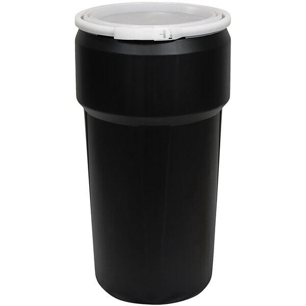 Ensure your safe storage and handling of hazardous materials with this Eagle Manufacturing 1623BLK 20 gallon black plastic barrel drum with plastic lever-lock. This container provides a convenient and professional-looking place to keep hazardous materials, biowaste, or spill kit containers. The compact design allows it to fit into a variety of spaces, and a lever lock ensures that the contents are secure. This lock is ideal for situations where the drum is frequently used, as the lock simply latches in and out of place without the need for tools or keys.