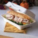 Serve your favorite menu items with this Eco-Products Vanguard 9" x 6" x 3" compostable no PFAS added sugarcane clamshell container. This container is grease-resistant, making it ideal for saucy and oily foods. At 9" x 6" x 3", this container is the perfect size for small sandwiches, side dishes, and hoagies or wraps. Plus, the hinged design conveniently allows for a lidded construction that will help keep food secure during transport.