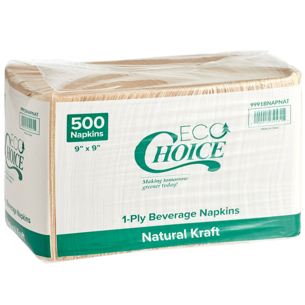EcoChoice 1-Ply Natural Kraft Beverage / Cocktail Napkin - 500/Pack