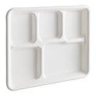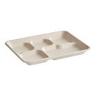 The EcoChoice 10" x 8" compostable white plant fiber 5 compartment tray is perfect for restaurants, caterers, and sandwich shops that serve anything from hot entrees to cold salads. Easily carry your meal through a cafeteria or dining room while also taking a step toward going green with this environmentally smart option!