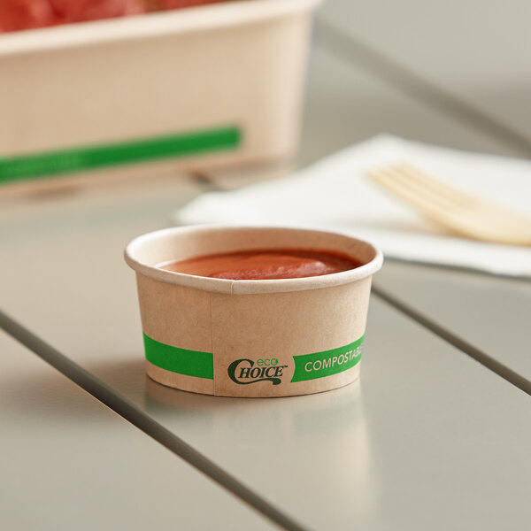 Send your delicious food home with guests in this EcoChoice 2 oz. round kraft bio-lined compostable take-out container.