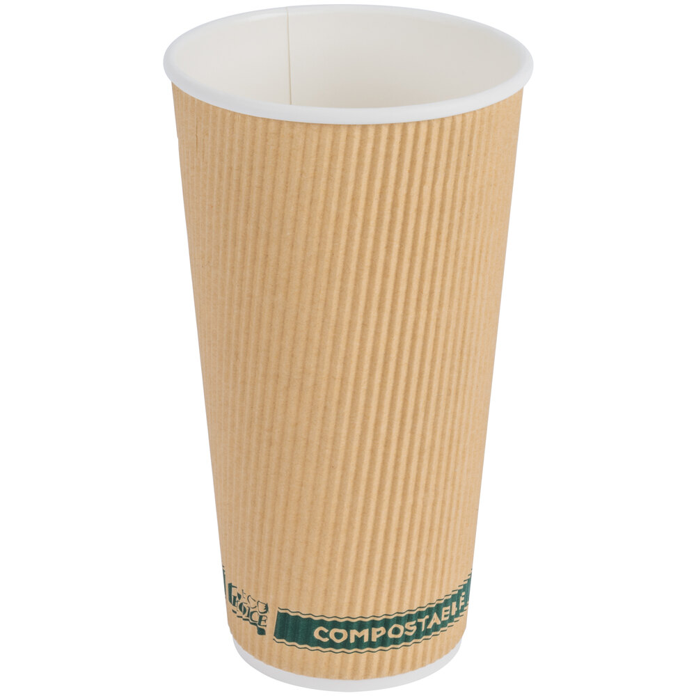 This EcoChoice 20 oz. sleeveless kraft paper hot coffee cup is perfect for your coffee shop, bistro, concession stand, or kiosk, minimizing waste, while ensuring efficiency. The innovative rippled wall on the outside of each cup keeps the surface warm to the touch, not hot like with comparable smooth surface cups. Use this cup to hold coffee, cappuccino, and piping hot lattes. This cup is the ideal way to serve hot beverages, to-go, to all of your customers!