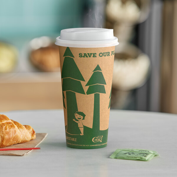 EcoChoice 20 oz. Kraft Tree Print Hot Cup and Lid - 100/Case