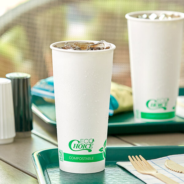 Promote environmental friendliness at your concession stand, cafe, or restaurant with this EcoChoice 22 oz. compostable PLA paper cold cup. This cup is the perfect way to offer drinks to-go while still showing that your business cares about the environment.