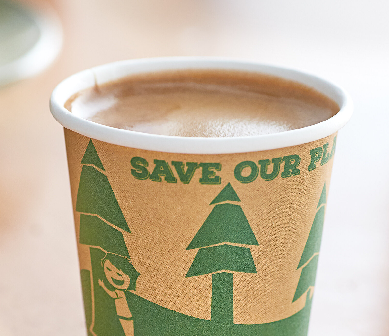 We use these for the time being because there is not currently a home compostable coffee cup. These types have to be taken to a facility to be disposed of properly/in an eco-friendly way. For now they are okay.