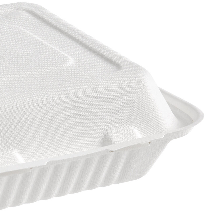 EcoChoice 9" x 9" x 3" Compostable White Plant Fiber 1 Compartment Take-Out Box - 200/Case