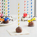 Make sure your decadent fudge cake pops and seasonal pumpkin spice cake pops are always served in style, with this gold stripe EcoChoice 7 3/4" paper cake pop straw!