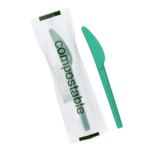 Show your guests that your establishment cares about the environment and about supplying excellent products by providing them with this disposable CPLA knife! Use this utensil with other EcoChoice disposable items, like their cups, plates, and bowls (sold separately), in your restaurant, grab-and-go retail stand, office breakroom, or school cafeteria.