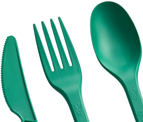 Spoon and Fork set by EcoChoice is heavy duty, won't break easy and best of all it's a compostable item, and a nice color - green.