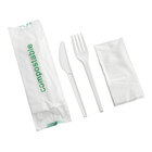 This EcoChoice wrapped heavy weight compostable 6 1/2" white CPLA knife, fork, and napkin kit is a more sustainable option for disposable cutlery! An ideal alternative to traditional, petroleum-based plastic utensils, the cutlery is made of CPLA, a plant- and chalk-based plastic that's formed with renewable resources to minimize environmental impact upon disposal. CPLA (crystalized PLA) is stronger and can withstand temperatures than standard PLA, ranging from -4 to 212 degrees Fahrenheit, resulting in a sturdier utensil.