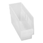 Designed to optimize your organization, this shelf bin features a molded-in label holder for clear and easy labeling. Seven horizontal divider slots allow you to subdivide and create smaller compartments within the bin with compatible black dividers (sold separately). The built-in rear hanglock allows the bin to remain attached to a shelving unit while fully tilting out for complete access to its contents. This bin's wide hopper front design also makes it easy to see and grab what it holds. With multiple sizes and colors available (sold separately), it's easy to configure a unit that will keep your business organized and running smoothly!