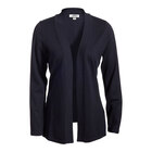 This cardigan is made of a soft 52% cotton / 31% acrylic / 17% nylon blend. It features an attractive smoke heather color, and it has a flattering feminine silhouette. It boasts a comfortable standard fit and a long length for a unique, stylish look.
