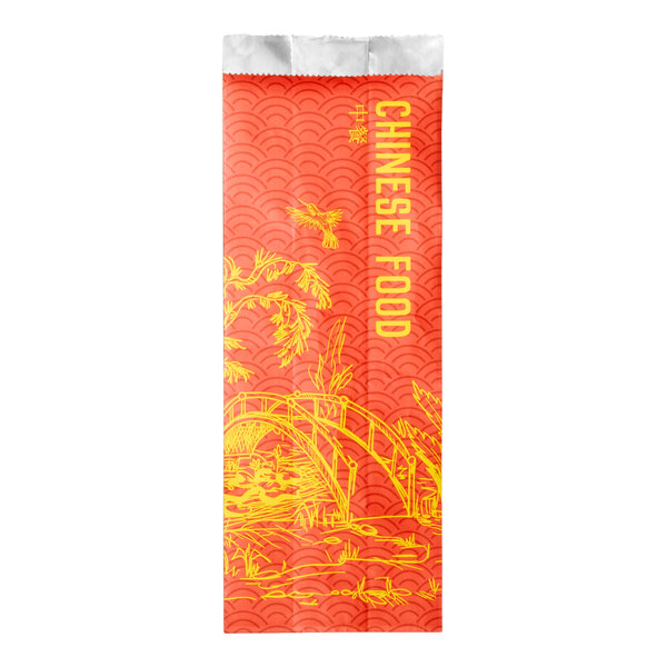 This pint-sized bag is ideal for holding small, individually-sized portions of egg rolls, ribs, and side dishes. Whether you need basic take-out bags at your Chinese restaurant or you are hosting a Chinese-themed event or stand, this foil bag is a great addition to capture guests' attention.