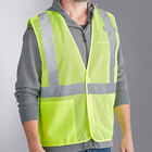 Ensure proper visibility in working conditions with this Ergodyne 21079 GloWear 8215BA lime Type R Class 2 economy breakaway mesh vest! This ANSI-compliant vest is constructed of durable yet lightweight 3.3 oz. polyester mesh, so it's made to last while remaining unobtrusive for everyday wear and use. Its hook and loop closure is easy to use and secures it in place, so wearers won't have to worry about the vest slipping off. Plus, the breakaway design on the shoulders and sides reduces the risk of snag hazards and injuries from moving parts. The dual sizing allows for a looser fit, making this vest ideal for wear over jackets and sweatshirts. For added convenience, this vest includes lower interior pockets, allowing you to easily store pens, notepads, and small gadgets. A radio mic tab allows this vest to work with portable radios and ensures easy access for convenient communication.