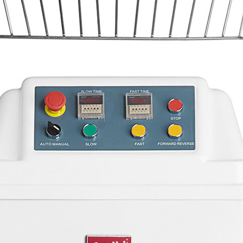 This spiral dough mixer has an intuitive control panel that includes 2 timers, which keep careful track of how long the mixer churns and prevents the dough from becoming overworked. After selecting manual or auto-mode, choose between the slow- or high-speed timer and use the panel to precisely set your desired time up to 99 minutes.