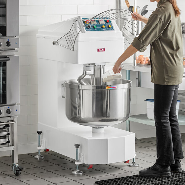 Designed with commercial applications in mind, this dough mixer has a durable fixed 100 qt. stainless steel bowl, and can handle a flour capacity of 11 - 88 lb. and a dough capacity of 140 lb. Whether you're prepping pizzas or bread, you'll notice a notable uptick in your kitchen efficiency once you install this unit in your establishment.