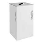 This receptacle features a pebble black gloss premium powder coated steel construction, while the easy-to-remove lid features a platinum powder coat finish. This allows it to last in your establishment as well as keep your area looking clean and tidy. It also features heavy duty feet to bring extra elevation and protect your floors from scratches and other damage. Its easy-to-read graphics are applied on two sides to designate its status as a plastic receptacle. Plus, it includes a removable LLDPE plastic liner with additional lift handles and a bag tie notch for added convenience. Both the plastic liner and steel receptacle are constructed of fire-safe material to uphold the most rigorous safety standards.