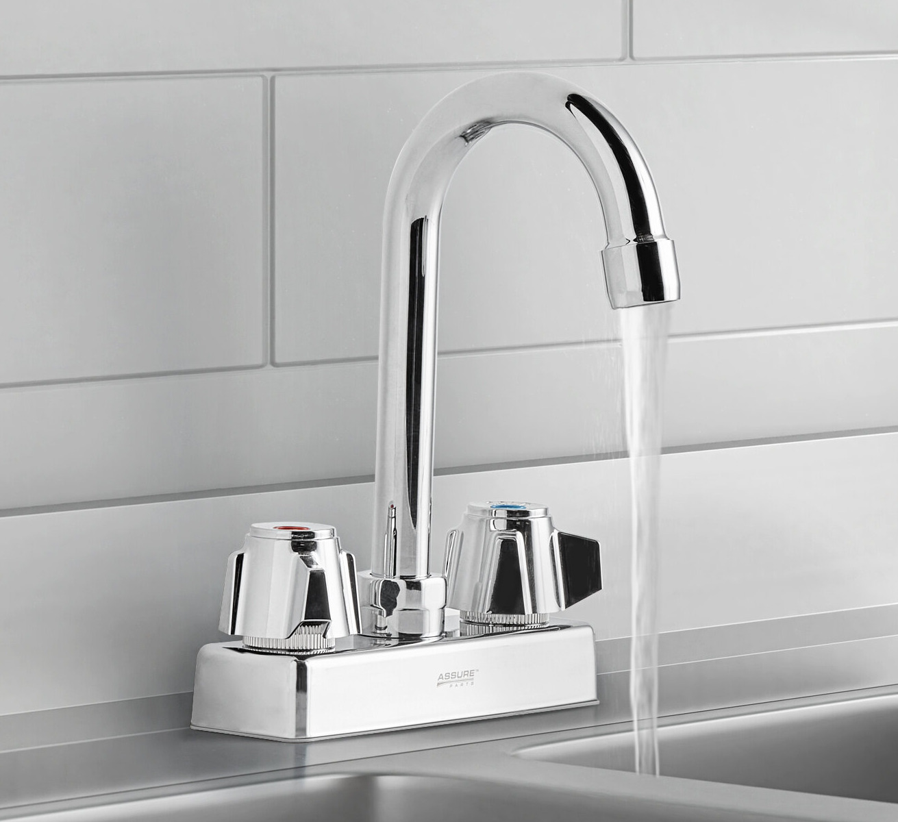 Assure Parts 1.8 GPM Deck-Mount Faucet with 4" Centers and 3 1/2" Swivel Gooseneck Spout