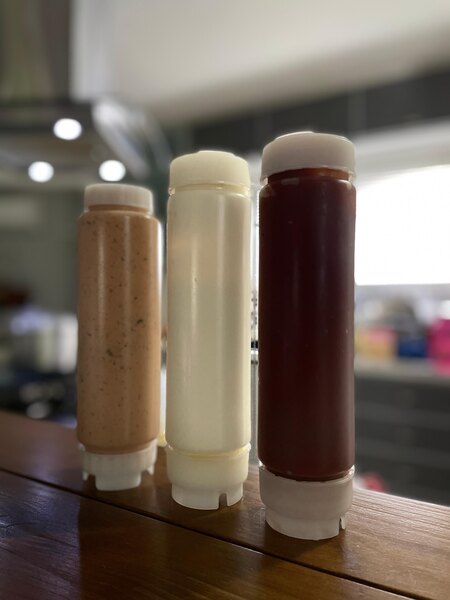 This is my review of the FIFO Innovations 12 oz. Clear Double Wide-Mouth Squeeze Bottle with Thin Dispensing Valve. They come in different sizes and have different valve options, I chose the 12.oz with thin valve and use it for my mayonnaise. With both sides being removable, the first-in, first-out principle is helpful to get rid of older product, whereas a traditional squeeze bottle only allows for refills from the top. What happens is the oldest or first-loaded product sits and collects at the bottom, and new product is refilled on the top. This FIFO bottle eliminates this issue, excellent for things that coagulate like mayo or Queso.