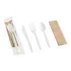 Go green with this Fineline 42CKFSK.WH Conserveware individually wrapped white CPLA flatware and utensils kit with napkin! This disposable flatware and utensils kit is the eco-friendly option for your take-out service. Each piece of flatware is made of renewable resources and features a crisp white color, great for adding an upscale look to your take-out options. Conserveware by Fineline Settings is an environmentally friendly alternative to traditional tableware.