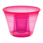 The bomb shot cups' pre-measured chambers reduce the risk of over-pouring, which keeps the taste of your drinks consistent and saves you money on alcohol. They are also disposable, for easy cleanup! This is a softer plastic cup. We also sell hard plastic neon and clear bomb shot cups.