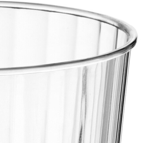 Reviewing the FineLine 12oz crystal tumblers. The ribbed design is very attractive and makes the presentation at the table more elegant. The rim is rolled plastic with no jagged edges. I have the plain fineline 16 oz tumblers and these cups are thicker plastic and much more attractive. The cups will crack if you squeeze the cup but you have to really squeeze it on purpose - regular handling of the cup is fine. The fact that the cup cracked when I was purposely trying to crack it doesn’t change my rating from 5 stars. These cups will be great for the non-alcoholic beverages at my daughter’s outdoor wedding.