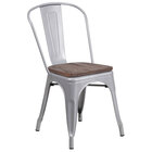 Bring excellent, reliable seating to any urban or modern dining area with the help of this Flash Furniture CH-31230-WH-WD-GG white stackable metal chair with vertical slat back and wood seat. Featuring a textured wood seat, this chair not only provides more comfortable seating than comparable all-metal chairs but also adds a modern look to your seating arrangements. Thanks to its simple, practical design, this chair can also be stacked up to 8 chairs high to maximize storage space. Plus, a curved, vertical slat back provides firm spinal support for additional comfort while enjoying a simple cocktail, delicious entrees, or a small appetizer.
