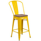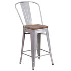 Bring excellent, reliable seating to any urban or modern dining area with the help of this Flash Furniture CH-31320-24GB-BL-WD-GG 24" blue metal counter height stool with vertical slat back and wood seat. Featuring a textured wood seat, this stool not only provides more comfortable seating than comparable all-metal stools but also adds a modern look to your seating arrangements. The 24" height is perfect for use at lower counters or tables that are 34" to 36" high. A convenient footrest built into the frame of the stool helps reduce the pressure on customers' legs and lower backs to promote optimum comfort throughout their visit. Plus, a curved, vertical slat back provides firm spinal support for additional comfort while enjoying a simple cocktail, delicious entrees, or a small appetizer.