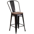 Flash Furniture CH-31320-24GB-BL-WD-GG 24" Blue Metal Counter Height Stool with Vertical Slat Back and Wood Seat