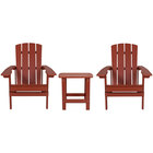 Perfect for outdoor patios, hotel cabanas, and beachfront rentals, this Flash Furniture Charlestown 2-pack blue faux wood adirondack chairs with side table invites guests to relax, unwind, and enjoy each other's company. The chairs feature a classic lattice back and a blue color that are sure to fit seamlessly into any space. Their slanted seats encourage guests to comfortably recline while the extra-wide back and arms relieve pressure from the neck and shoulders. Plus, the chairs are conveniently foldable for easy transport and storage. Additionally, the chairs come with a matching side table that allows guests to set down their drinks and plates while seated.