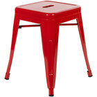 Instantly add a modern look to your tabletops with this Flash Furniture ET-BT3503-18-PR-GG 18" purple stackable metal indoor / outdoor backless standard height stool with square drain seat! The drain hole seat is easy to clean and ensures guests are at a comfortable height to enjoy your signature drinks, appetizers, entrees, and desserts. Meanwhile, this stool boasts a solid, one inch thick iron frame and has a 250 lb. capacity for utmost stability for your patrons.