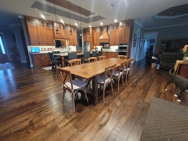 The table is beautiful. The set looks good. There was a nail in pallate that was nit hammered in all the way that went through and scratched table, but is barely noticable. We are pleased with our purchase