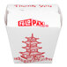This 8 oz. Fold-Pak 08MWPAGODM take out container's upscale, pagoda pattern is popularly used in Chinese / Asian restaurants. Use it for just about any of your menu items. The leak-and grease-resistant packaging keeps hot, cold, wet, or dry foods fresh from kitchen to destination. Plus, the efficient one-piece design of the package maintains freshness by retaining heat and venting steam.