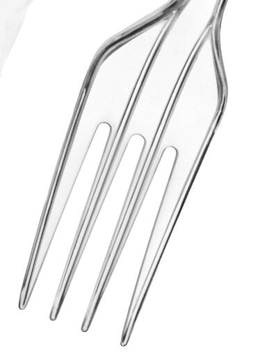 This disposable fork is extremely versatile and great for a wide variety of meals. You can give them to your customers in to-go boxes and take-out bags or fill your flatware bins with them for guests to grab on the go at your quick-serve restaurant. Use it to fill your flatware bins at your snack shack or concession stand or to complete your plastic cutlery setting.