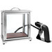 Rouse your guests' tastebuds with the Crafthouse by Zwiesel Fortessa 10 3/4" x 9 1/2" smoke box with smoker! This smoker is perfect for countertops with an elegant glass-designed box and dark Acacia base. Guests will be amazed as they watch the chamber dance with smoke and fill their food or drink with flavor. The smoker features a handle on the top so that you can easily lift it without smudging the outside, giving your guests pristine viewing.