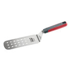 Its durable stainless steel blade scrapes and flips with ease, making it perfect for use on flat tops and grills. The blade is crafted with the perfect balance of stiffness and flexibility, allowing you to both flip large cuts of meat and pick up vegetables with ease. Additionally, the solid design maintains a strong, sturdy grip, prevents food from falling apart, and helps to keep breading on fried foods intact. Its convenient hanging hole allows you to take advantage of vertical space for efficient storage and hygienically hang it to dry. This turner is the perfect tool for grilling burgers, chicken, steaks, and vegetables in your restaurant, school, or hotel kitchen.
