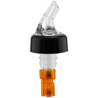 Quickly create effortless cocktails with this Franmara Bar-Pro 0.5 oz. red spout / orange tail measured liquor pourer with collar. This liquor pourer features fast and precise pouring with the 2-ball bearings controlling the pour from inside the pourer, ensuring an exact pour every time. Made of food-grade plastic and free of polycarbonates and glue, you can rest assured knowing this liquor pourer is safe and durable for heavy use in your establishment.