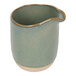 Offer an authentic dining atmosphere with the help of this Front of the House Artefact 4 oz. moss creamer pourer. The Artefact collection effortlessly captures the look of hand-thrown pottery in a highly durable, commercial grade porcelain. This creamer pourer offers a simple, organic vibe that will transform your tabletop presentation. Made from a high-temperature porcelain fortified with metal during the firing process, it's designed to endure the demands of heavy commercial use, providing outstanding dependability without sacrificing aesthetic appeal. This item is perfect for tabletop use, allowing your customers to pour milk and cream into their hot drinks or syrup atop their hotcakes.