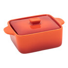 Front of the House Kiln 8 oz. Blood Orange Square Stoneware Ovenware Dish with Lid - 12/Case
