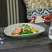 For a stylish yet functional departure from traditional dinnerware, serve your signature offerings on this Front of the House DOS030GYP20 Tides 12" x 8 3/4" semi-matte pumice oval porcelain coupe plate. Inspired by the natural shapes and tones of temperate coastal landscapes, this plate from the Tides collection offers a captivating design with rich coloring sure to add an authentic touch to your service. It offers the luxury of fine china without the delicacy of comparable porcelain dinnerware. Made from high-temperature porcelain fortified with metal during the firing process, it's built to endure the demands of heavy commercial use, offering outstanding dependability without sacrificing aesthetic appeal.