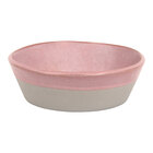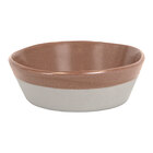 Enduring durability meets artisanal charm with this Front of the House Mezze® 26 oz. guava two-tone round porcelain bowl! Crafted from high-temperature porcelain, this bowl is designed to withstand high-use commercial environments, making it ideal for busy restaurants, hotels, and catering operations. The subtly tapered shape with a natural edge adds an earthy, handcrafted aesthetic to your tabletop, creating a sophisticated backdrop for your culinary creations. Perfect for serving soups, salads, and desserts, this versatile bowl enhances both casual and upscale dining for a memorable guest experience.