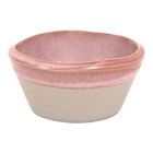 Enduring durability meets artisanal charm with this Front of the House Mezze® 3 oz. guava two-tone round porcelain ramekin! Crafted from high-temperature porcelain, this ramekin is designed to withstand high-use commercial environments, making it ideal for busy restaurants, hotels, and catering operations. The subtly tapered shape with a natural edge adds an earthy, handcrafted aesthetic to your tabletop, creating a sophisticated backdrop for your delicious concoctions. Perfect for serving sauces and condiments, this versatile ramekin enhances both casual and upscale dining for a memorable experience.