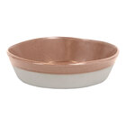 Enduring durability meets artisanal charm with this Front of the House Mezze® 48 oz. guava two-tone round porcelain bowl! Crafted from high-temperature porcelain, this bowl is designed to withstand high-use commercial environments, making it ideal for busy restaurants, hotels, and catering operations. The subtly tapered shape with a natural edge adds an earthy, handcrafted aesthetic to your tabletop, creating a sophisticated backdrop for your culinary creations. Perfect for serving hearty soups, salads, and entrees, this versatile bowl enhances both casual and upscale dining for a memorable guest experience.