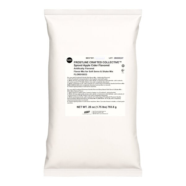 Expand your dessert and beverage offerings with this Frostline Crafted Collective spiced apple cider flavoring for soft serve and shake mixes! Perfect for flavoring soft serve, premium milkshakes, and other frozen treats, this spiced cider mix can be used to create an endless number of recipes. This mix is meant for flavoring only and must be mixed with a Frostline soft serve mix (sold separately). Combine it with vanilla soft serve and let it shine as a unique cup of spiced apple cider soft serve or dress it up with candy add-ins and toppings to serve delicious sundaes or trendy dipped cones. Whether you top it with candy corn, a caramel drizzle, or chopped candied pecans, this flavor is the perfect addition to your seasonal menu.