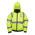 Stay warm and readily visible with this Cordova Reptyle bomber jacket. This jacket features a hi-vis lime green color with 2" silver reflective tape across the chest and sleeves to keep crew members visible and safe while on the job. It is both waterproof and wind-resistant to withstand and protect against the elements. It features a polyurethane-coated, 300-denier polyester shell that repels water, and it has double-stitched and taped seams for a durable construction. The black quilted polyester lining provides additional warmth. This Class 3, Type R jacket is perfect for roadway occupational use, and it maintains compliance with ANSI/ISEA 107-2015 standards.