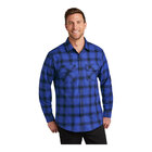 Port Authority W668 Unisex Customizable Royal / Black Open Plaid Long Sleeve Flannel Shirt