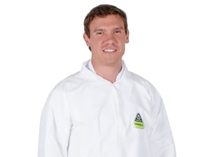 Made of an anti-static composite fabric, this lab coat is lighter and cooler than many other styles while still offering ample protection from varnish, resins, fiberglass, paints, and sanding dust. The tough composite fabric boasts a unique combination of breathable microporous film and soft non-woven polyolefin to create an effective barrier while still allowing for comfort. As an effective barrier, this lab coat features a collared neckline and snap-button front for extra protection, while the open wrists allow for easy application and removal. Use this coat wherever a high level of protection from contaminants is desired, such as with fertilizer, sewage, dust, dirt, or pesticides. Safe for food contact, this lab coat is also perfect for large food processing facilities.