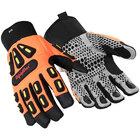 Choose a glove that is practical and reliable with these RefrigiWear orange insulated HiVis impact pro gloves - pair. These gloves are made with a flexible spandex back to ensure a fluid dexterity while working with your hands out in the cold. With the synthetic leather and silicone grip dots on the palm, your grip remains uncompromised while carrying equipment or tools. In addition, an antimicrobial treatment on the palms helps reduce the spread of germs across the worksite. Despite the optimized dexterity, the design makes no sacrifice to durability. The Kevlar® reinforced thumb crotch keeps the materials intact despite rigorous use or lifting.