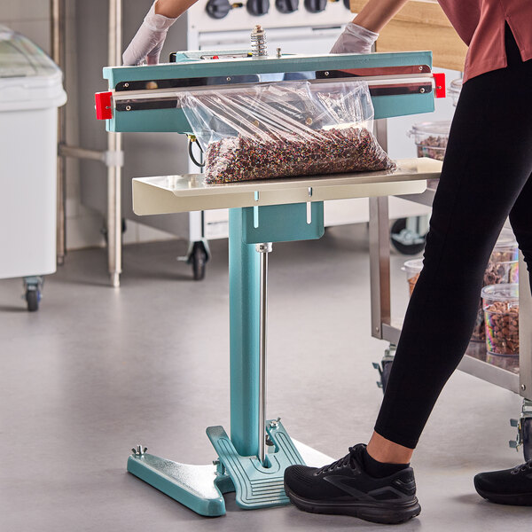 The foot-operated design on this Galaxy bag sealer allows for hands-free operation, increasing efficiency and productivity in your busy workspace.