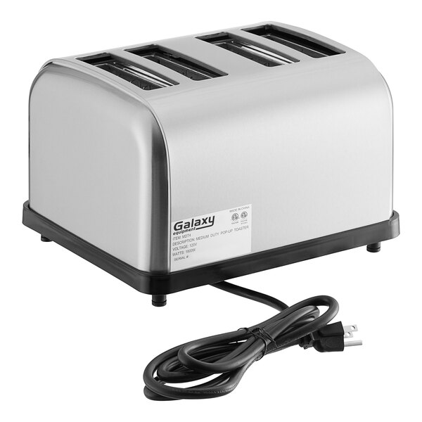 Designed with an all stainless steel body, this Galaxy unit is guaranteed to serve you well for a long time, easily withstanding regular use in your kitchen. Thanks to the 2 removable crumb trays, clean-up and maintenance is a breeze, too! It requires a 120V electrical connection for operation.